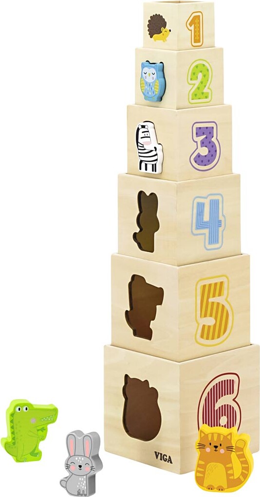 Viga's stableklodser og puttekasser sæt er en fantastisk måde at udfordre børns finmotorik og give dem mulighed for at udforske farver, størrelser og tal. Legetøjssættet indeholder seks...