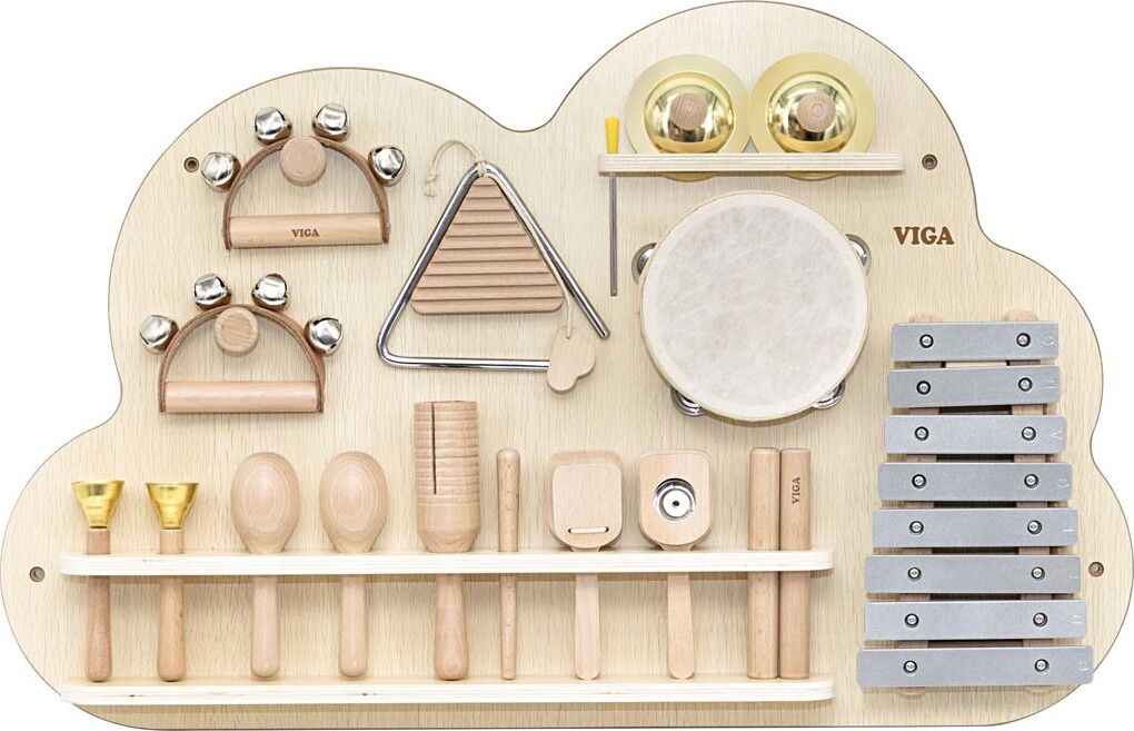 Viga Aktivitetstavle Slagtøjsinstrumenter - H 48 Cm - L 75 - B 6,6 - 1x12dele