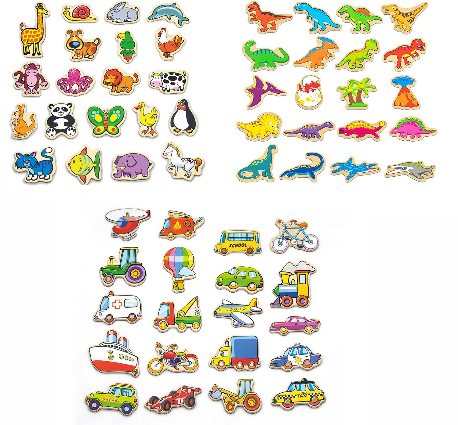 60 magnetfigurer fra VIGA med forskellige, sjove temaer. Perfekte til timevis af fantasifuld leg. - Indeholder: 60 magnetfigurer. - 3-Pak. - Perfekt til køleskabet eller enhver anden magnetisk overflade. - Sødt og sjovt design. - Perfekt til kreativ og fantasifuld rolleleg. - CE-mærket. - Anbefalet alder: Fra 1,5 år. - Træ.