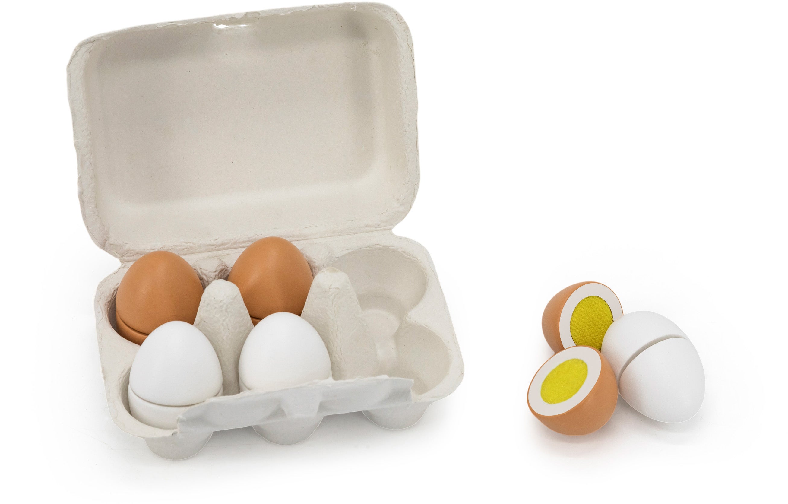 Æggebakke fra VIGA med seks æg, der kan deles på midten. Perfekt til timevis af fantasifuld leg. - Indeholder: 1 æggebakke, 6 æg. - 6-pak. - Når ægget deles, er den gule velcro præcis som blommen i et rigtigt hårdkogt æg. - Mål æg: 4x4x5 cm. - Realistisk design. - CE-mærket. - Anbefalet alder: Fra 3 år. - Træ, karton.