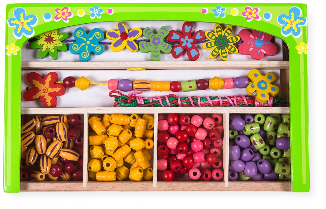 Et sjovt perlesęt fra VIGA, der givet barnet mulighed for at lave sine helt egne halskęder. Sęttet indeholder tråd og tręperler i forskellige former og farver, og som en bonus ingår der endda også fine tręblomster! Du kan tilkųbe VIGA Tręperler Butterfly og Heart for flere perler og kombinationer. Anbefalet alder: Fra 3 år. Materiale: Trę.