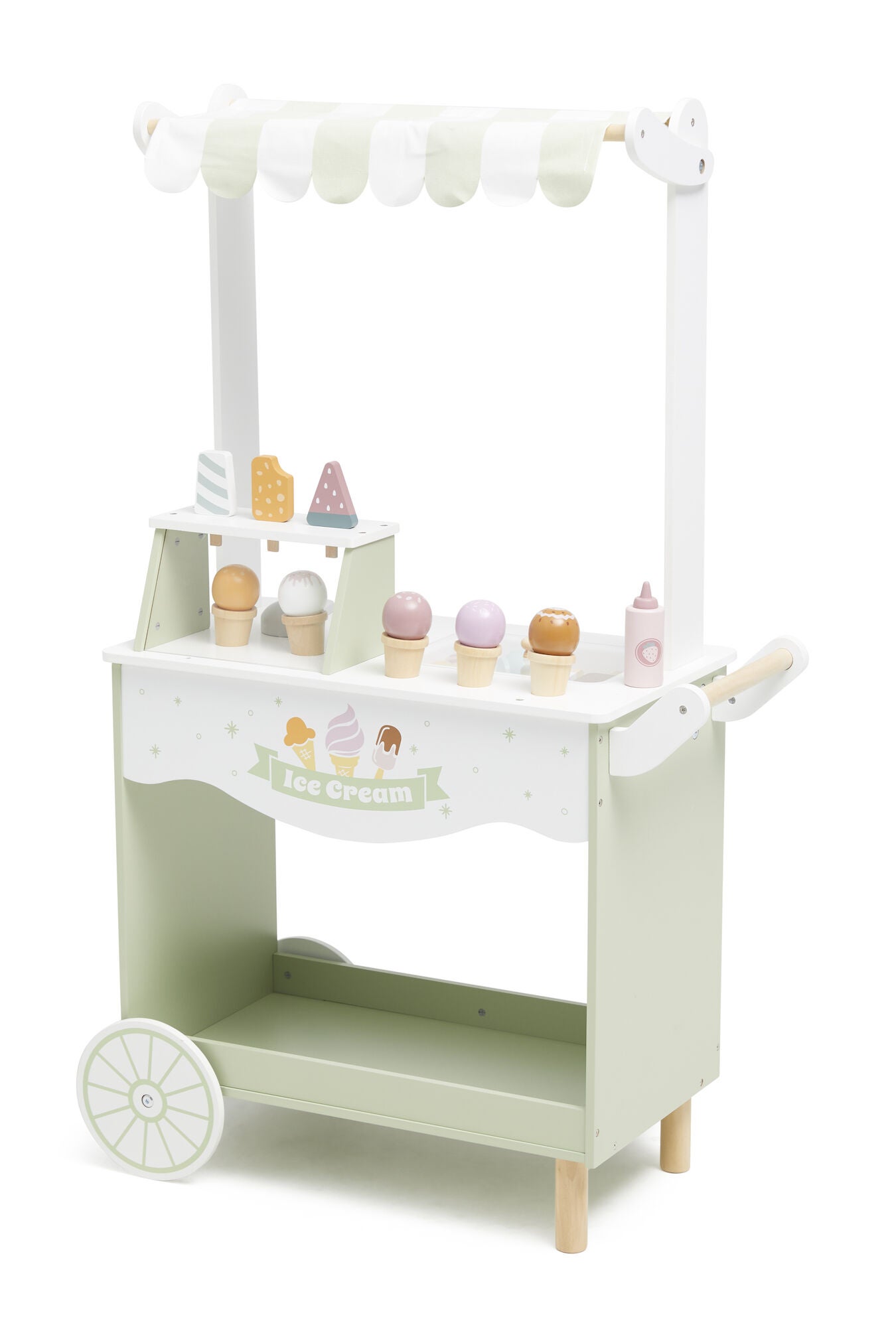 Polar B isvogn fra VIGA med et legende design i flotte farver. Den har to hjul og et praktisk håndtag for let transport. Isvognen har rummelig opbevaringsplads på undersiden og en tavle, hvorpå man kan skrive dagens forskellige smagsvarianter. Du får også smukt lavede iskugler og kræmmerhus, ispinde og en magnetisk isske for en realistisk isvognsoplevelse. Perfekt til timevis af fantasifuld leg. Indeholder en isvogn med flere forskellige slags iskugler, vafler, pindeis, jordbærtopping og en isske. Isske med magnet, så man kan få fat i iskuglerne. Tavle på vognens ene side (kridt medfølgerikke). CE-mærket. Anbefalet alder: Fra 3 år. Træ.