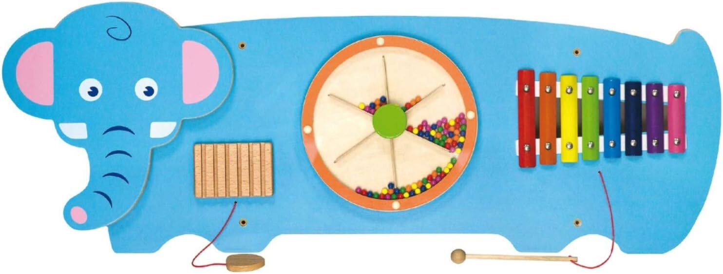 Væglegetøj fra VIGA i form af en elefant med mange sjove funktioner. Perfekt til pædagogiske og lærerige lege! - Xylofon. - Forskellige motoriske legemuligheder. - Farverigt design. - Perfekt til træning af former og farver, hånd-øje-koordination og finmotorik. - CE-mærket. - Anbefalet alder: Fra 1,5 år. - FSC-certificeret træ.