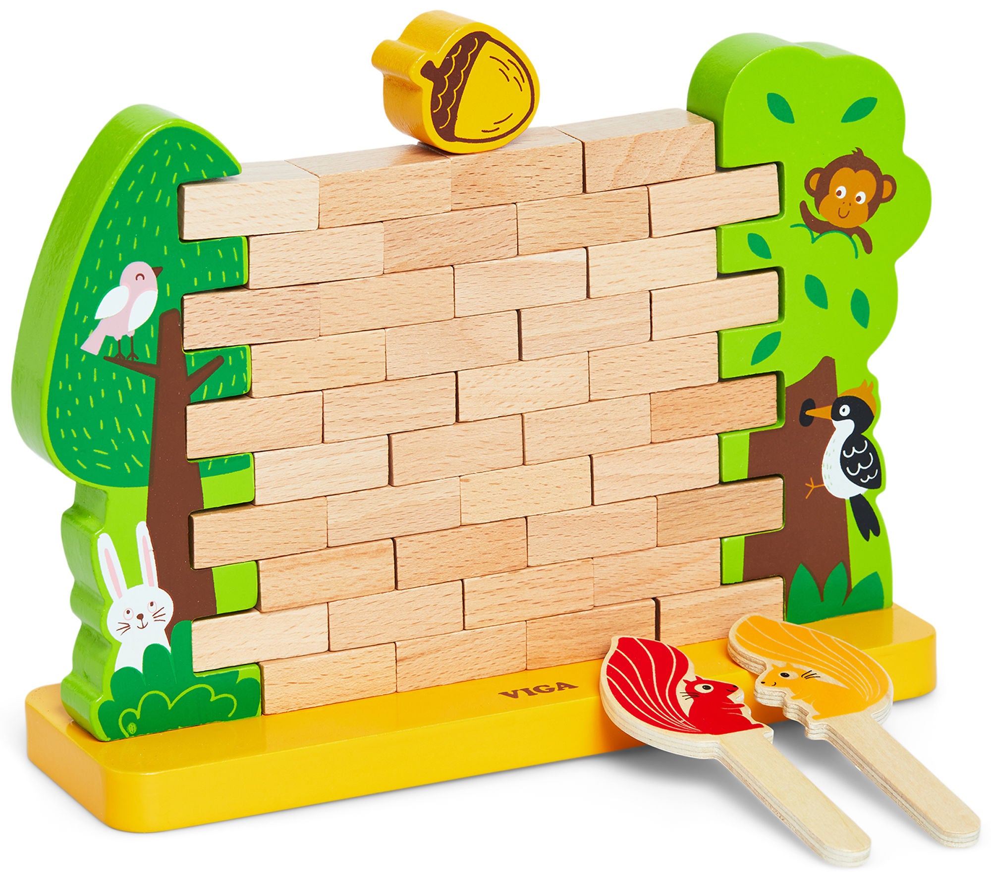 Underholdende spil fra VIGA, der er spændende og sjovt. Byg væggen, bestem hvem der starter og brug derefter en egernpind til at flytte en mursten ad gangen. Men vær forsigtig, så du ikke får koglerne til at falde ned! Spillet egner sig til to personer, udvikler finmotorik og er en hyggelig aktivitet for hele familien. Anbefalet alder: Fra 3 år.