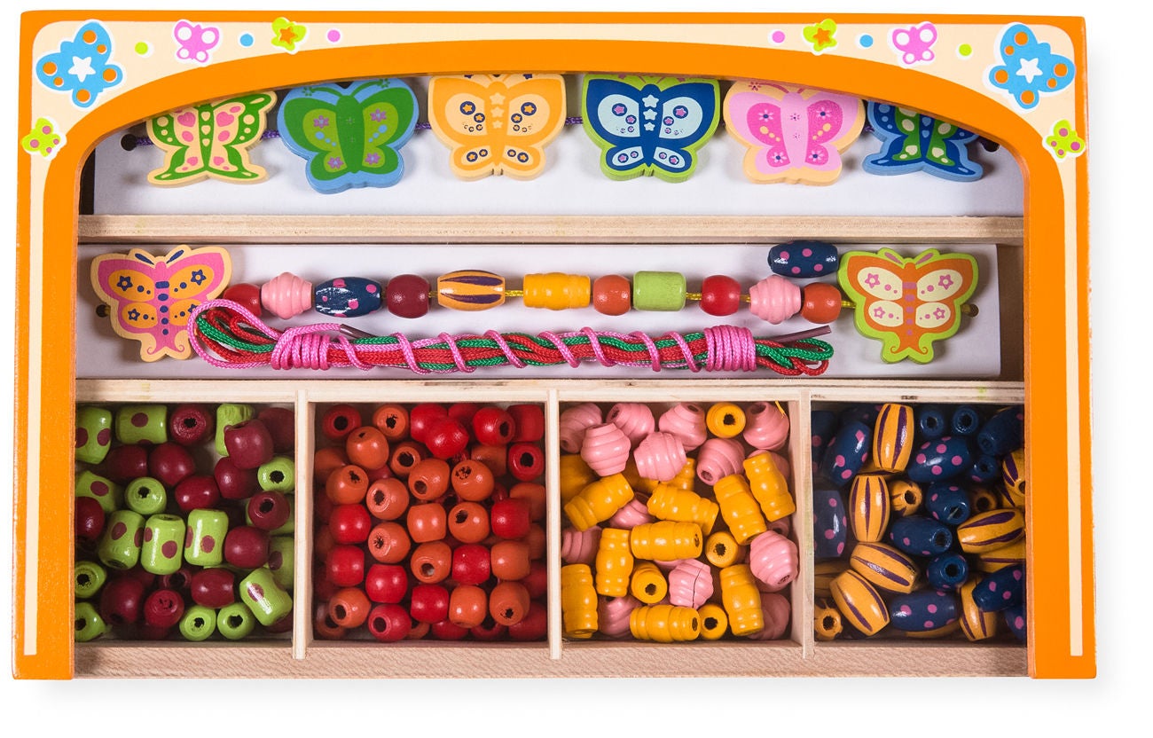 Til alle bųrn, der elsker at samle selv og lave deres eget pynt, er dette et skųnt smykkesęt, hvor bųrnene kan bruge så lęnge de lyster på at lave deres egne, unikke halskęder. Sęttet inkluderer flotte tręperler, snor og superfine sommerfugle i trę. Du kan tilkųbe VIGA Tręperler Flower og Heart for flere perler og kombinationer. Anbefalet alder: Fra 3 år. Materiale: Trę.