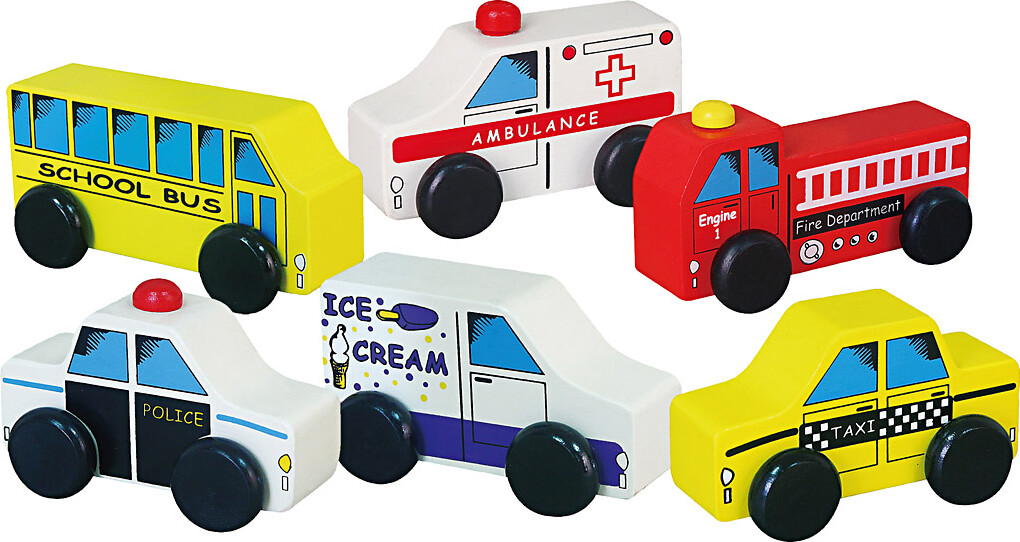 Legetøjsbiler I Træ - Erhvervskøretøjer - 6 Biler - Viga