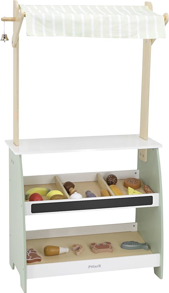 Købmandsboden er lavet af høj kvalitet træ, hvilket sikrer holdbarhed og langvarig brug. Den har en smuk, farverig finish, der vil fange børns opmærksomhed og bringe liv til legepladsen eller børneværelset. Med detaljer som hylder til varer og en disk til kassefunktionen, kan børnene lege købmand og kunder, og derved få en fornemmelse for rolleleg.