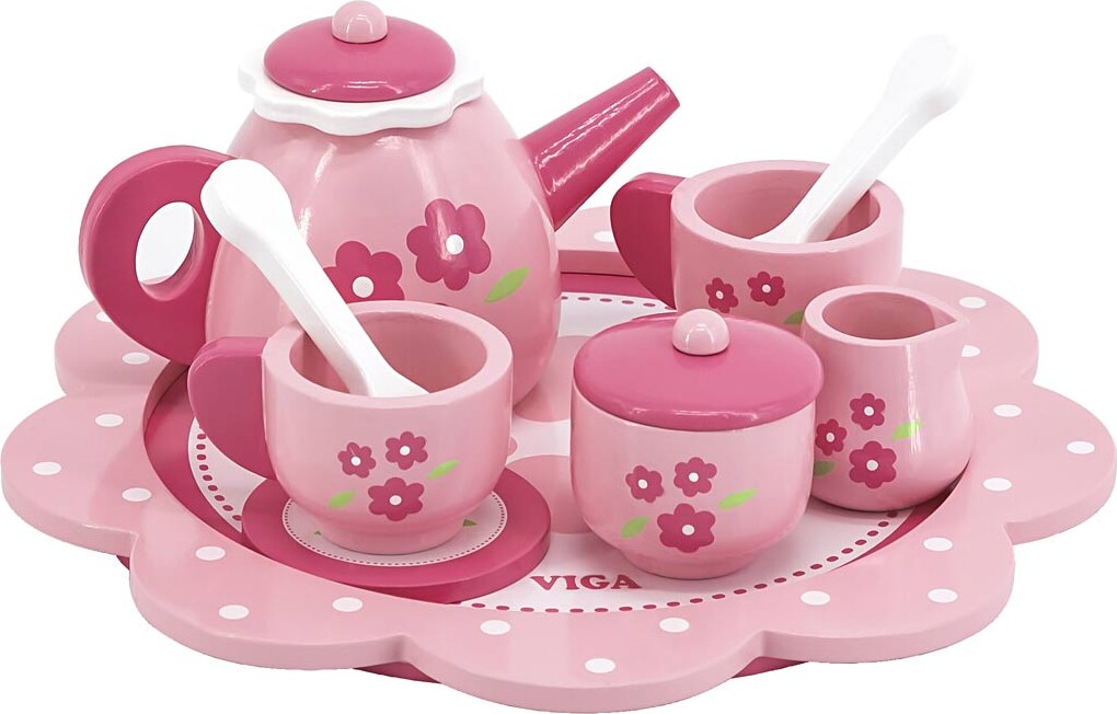 Forkæl dit barn med det smukke Viga tesæt i træ, der er designet specielt til børn. Dette sæt i en dejlig pink farve med blomsterdetaljer er ikke blot en leg, men også en fantastisk måde at stimulere kreativiteten og fantasien på. Sættet består af 9 dele, der inkluderer tepotte, kopper, tallerkener og en sukkerkrukke, så dit barn kan arrangere den perfekte teselskab.