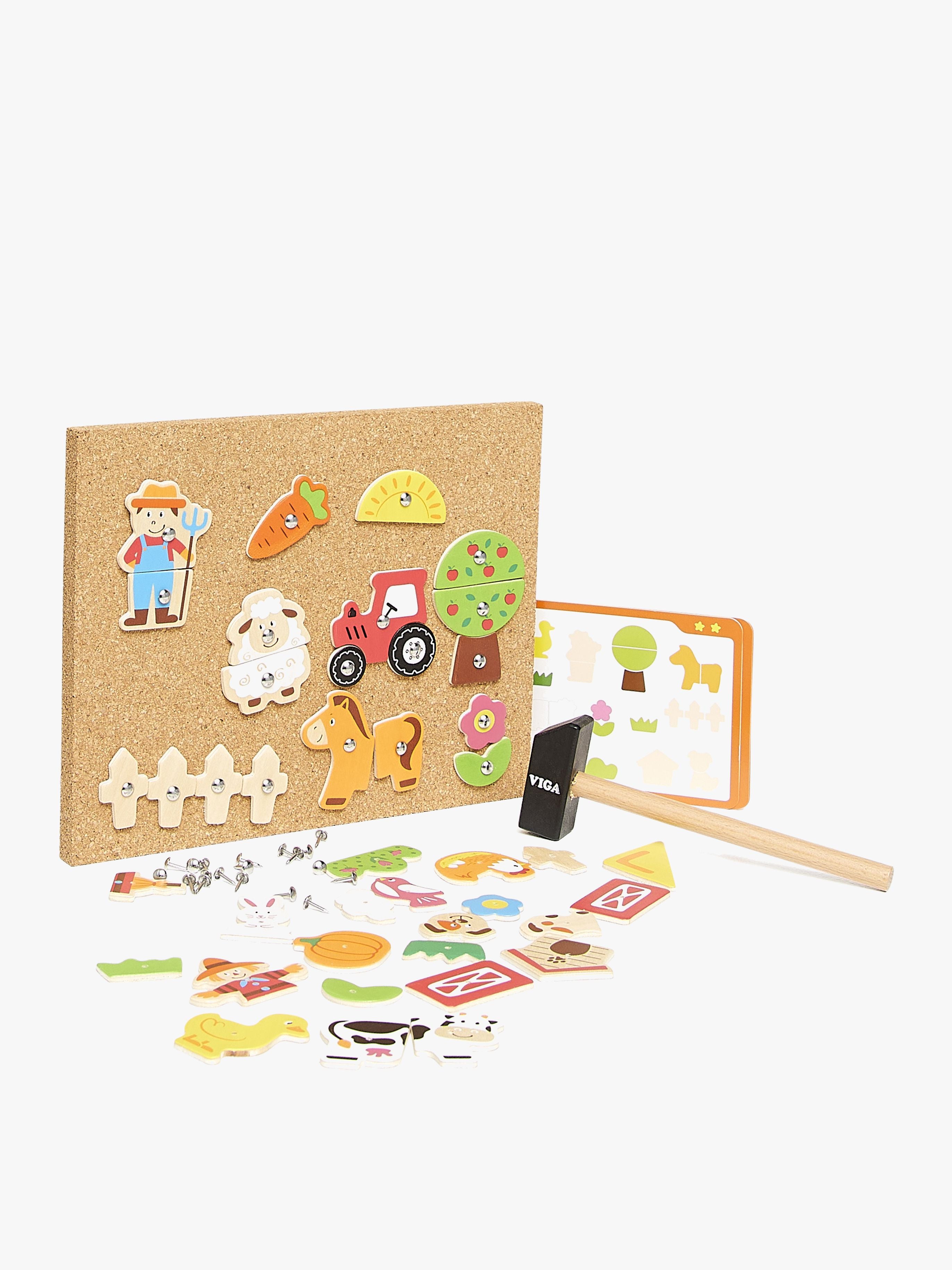 Når dit barn sætter figurerne fast på korkpladen ved hjælp af hammeren, træner det samtidig øje-hånd-koordination og koncentration. Dette sæt er ideelt til børn fra 4 år og frem, og det hjælper dem med at forbedre deres problemløsningsevner.