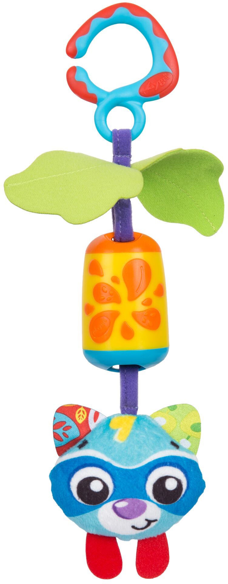 Sjovt aktivitetslegetųj fra PlayGro, der kan hęnges på barne- eller klapvognen, i bilen eller på aktivitetsbuen. Legetųjet har flotte farver, spęndende raslelyde, rangle og forskellige overflader, der er interessante at rųre ved. Et stimulerende legetųj, der udvikler dit barns sanser. Anbefalet alder: 0 2 år