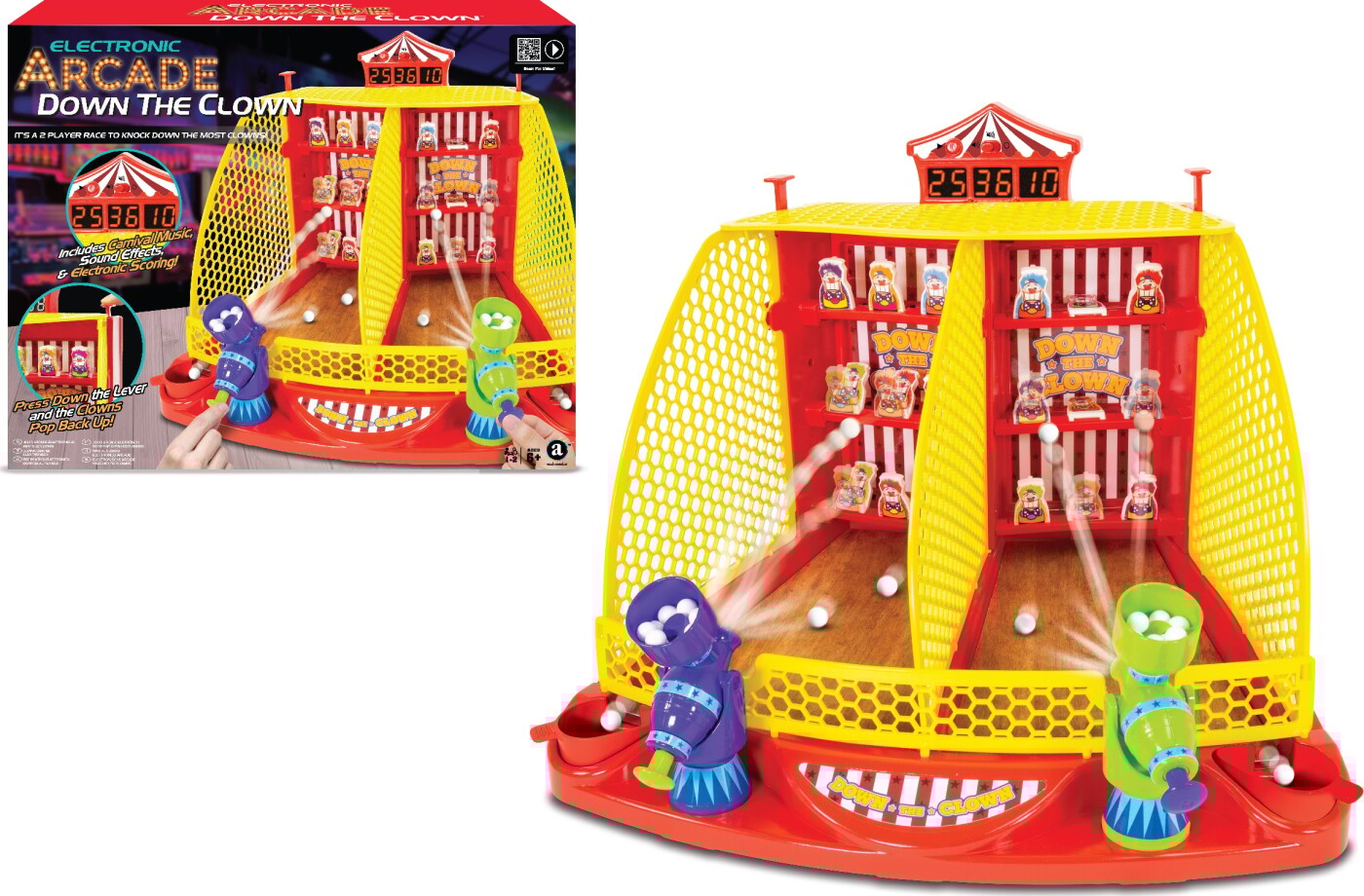 Bring spændingen fra et af de mest populære arkadespil hjem med Electronic Arcade Down the Clown! Et af de ældste og mest elskede karnevalsspil, denne bordpladeversion genskaber den samme...