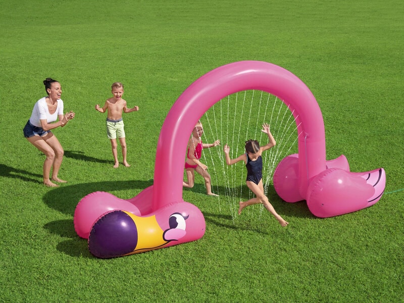 Forvandl din have til et virkelig eksotisk vandland med en vandsprinkler i form af en kæmpe og farvestrålende flamingo. Flamingoen kobles til din haveslange, og vandet sprøjter fra dens lange hals og giver masser af sjov hele sommeren!