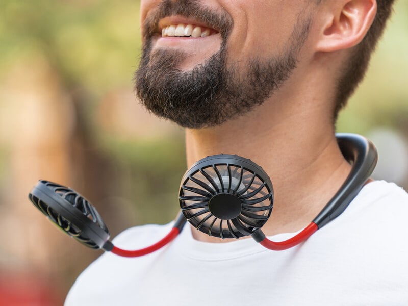 Med sommeren kommer varmen og med varmen kommer desværre også sveden, som stille siler ned ad nakken. Blæs alle dine varmeproblemer væk med en bærbar ventilator, der hviler fleksibelt rundt om din hals og giver en jævn strøm af behagelig, luftig vind.