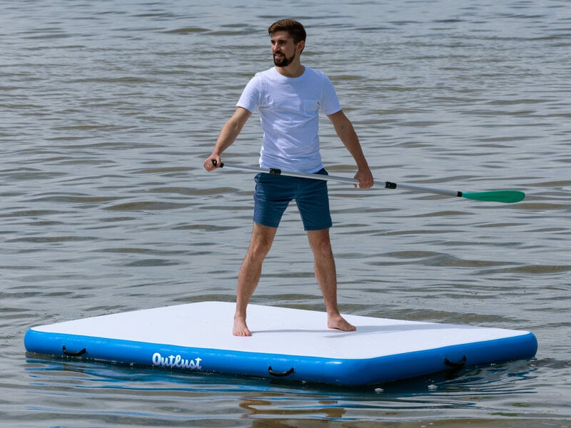Tag din helt egen badeplatform med til stranden eller søen til sommer! Denne oppustelige flåde passer perfekt til at flyde rundt på, til det er tid til næste dukkert. Åren kan foldes sammen, håndpumpe og opbevaringstaske medfølger.