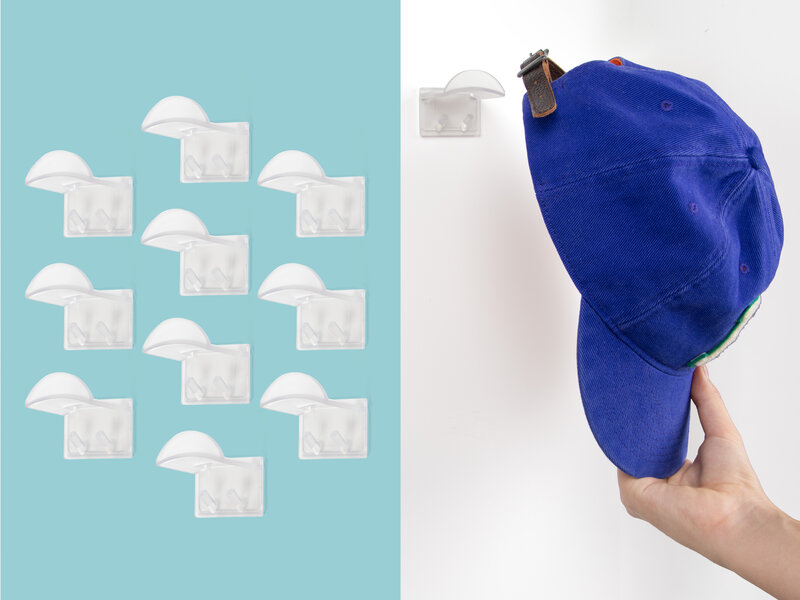 Organiser dine kasketter med stil! Oplev vores 10-pak med selvklæbende kroge til kasketter - den perfekte løsning til pæn og ryddelig opbevaring.