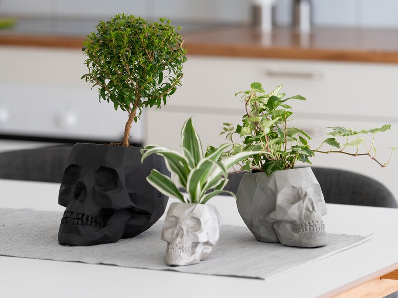 Løft indretningen til et dødcool niveau med en betonkrukke formet som et dødningehoved! Dette kvikke og oplivende kranium i beton fås i flere størrelser og spreder en dødskøn stemning derhjemme.