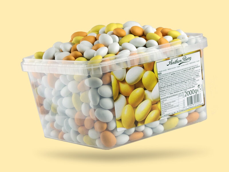Kan du ikke få nok af yndlingsslikket? Nyd Anthon Bergs luksuriųse mandelęg i storpak! Her får du hele 2 kg af de męlkechokoladeovertrukne mandler, som er dyppet i mųrk chokolade og derefter dękket af en sprųd sukkerskal i forskellige farver.