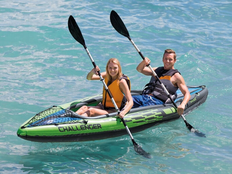 Tag en eventyrlysten ven med og padl af sted på sommerens bedste udflugt! Intex Challenger K2 er en tosædet og oppustelig kajak, der er stabil i vandet, samtidig med at den er nem at tage med og let at puste op. Udstyret med bagagenet, aluminiumsårer og alt andet, du har brug for.