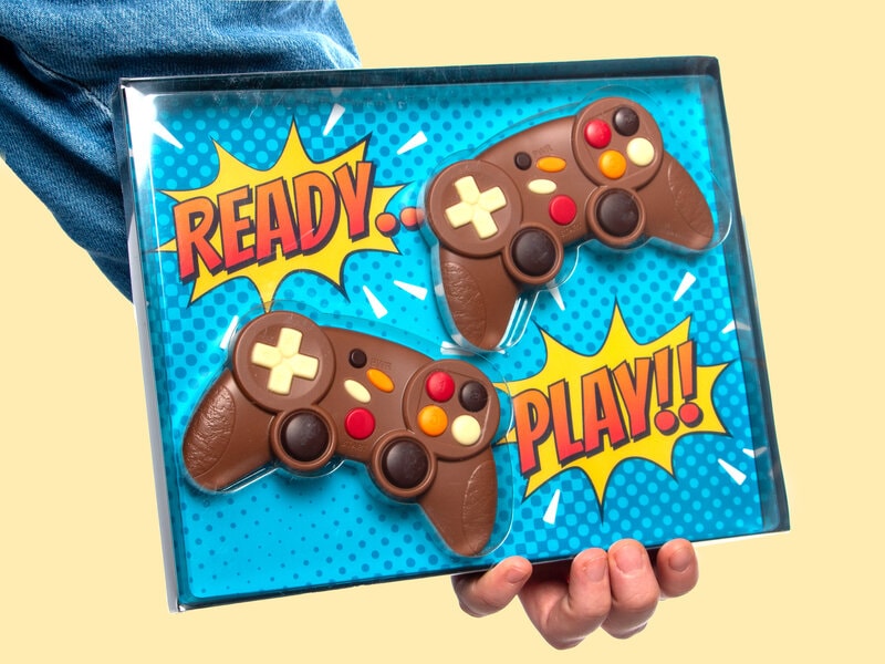 For alle spilentusiaster derude - oplev næste niveau af chokoladenydelse med denne æske indeholdende ikke kun én, men to, spillekonsoller i lækker chokolade!
