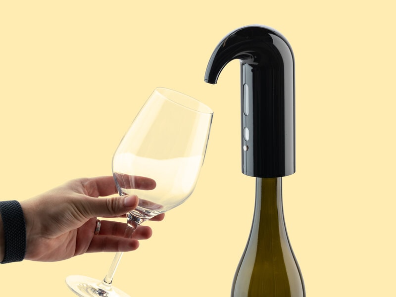 Giv dit rødvin den VIP-behandling, det fortjener med denne smarte elektriske vinilter! På bare få sekunder omdannes din vin fra ""helt ok"" til ""herregud, hvad er det for et mesterværk?!"".