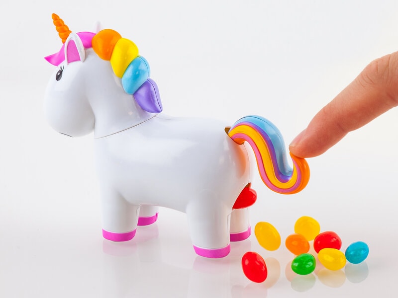Enhjørninger bider totter af regnbuen og skider lækre slikbønner! Den søde Pooping Unicorn efterlader sig små bjerge af slik, når du trykker halen ned måske den sjoveste måde at servere slik på! Kommer med 20 gram slikbønner, og du kan fylde enhjørningens mave med lækre slikbønner igen og igen!