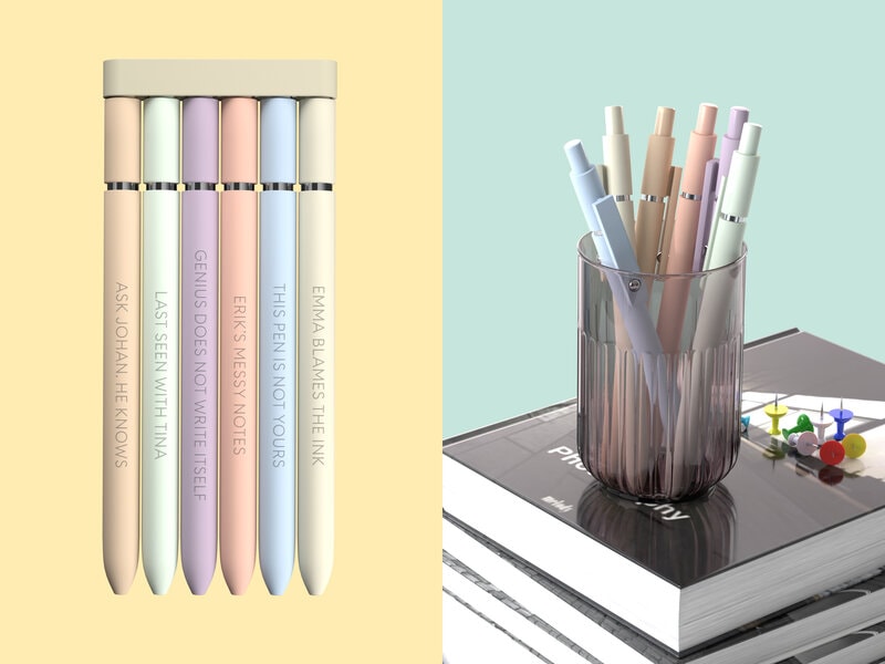 Ønsker du at sprede visdom, humor eller hemmelige beskeder? På denne 6-pak pastelfarvede kuglepenne kan du indgravere valgfri tekst!