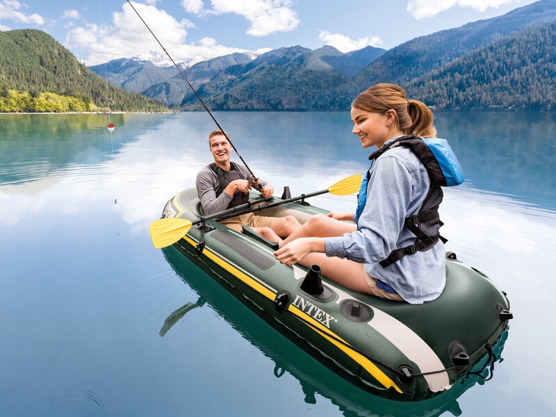 Oplev friheden på vandet med denne gummibåd fra Intex! Båden er oppustelig og har plads til to personer.