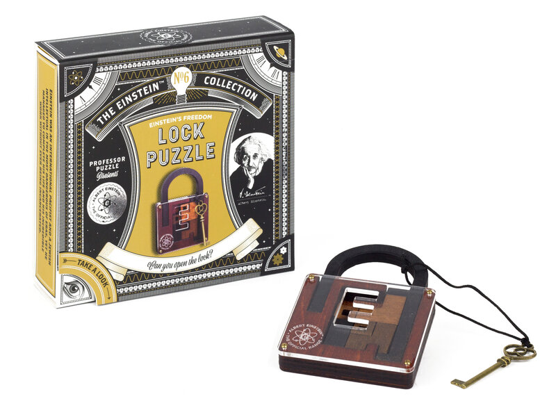 Lad hjernevindingerne udfordre med et virkelig svært træpuslespil i 3D! Dette puslespil fra Professor Puzzles The Einstein Collection er formet som en hængelås. Lykkes det for dig at flytte rundt på de forskellige dele af låsen for at låse den op?