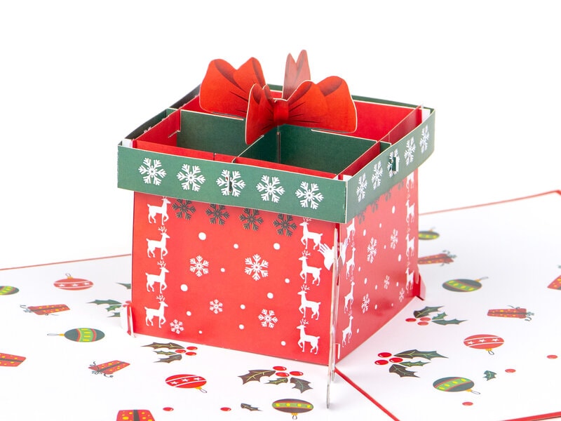 Ønsk en kæmpegod jul med en kæmpepakke! Når dette farverige 3D-julekort åbnes, kommer der en stor julegave frem - selv julemanden kan ikke løfte den! Leveres med kuvert.