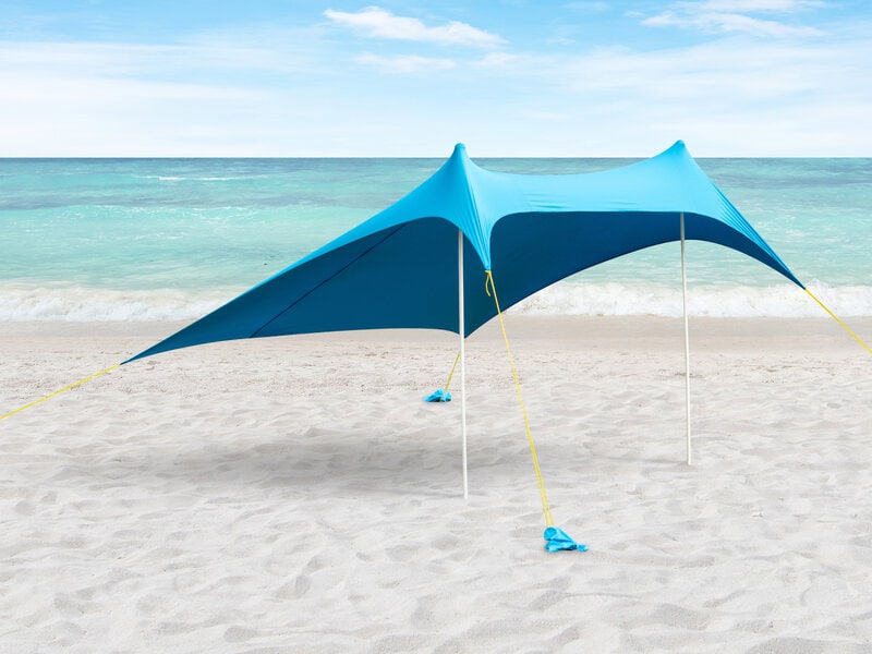 Solens stråler er endelig nået hertil, men efter et stykke tid bliver de dejlige stråler uudholdelige selv for den værste soltilbeder. Når længslen efter skygge bliver stor, kommer løsningen her i form af et letmonteret og fleksibelt strandtelt med UV-beskyttelse.