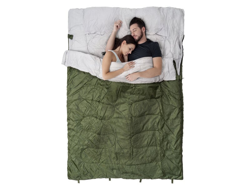At ligge i telt kan være hyggeligt, og det kan lyde fristende at kravle ned til sin soveplads efter en lang dags eventyr, men at ligge der alene og ryste af kulde i sin sovepose, når mørket falder på, er ikke et højdepunkt. Med vores sovepose til to kan du invitere den, du elsker, så I kan krybe sammen og få en varm og hyggelig nat.