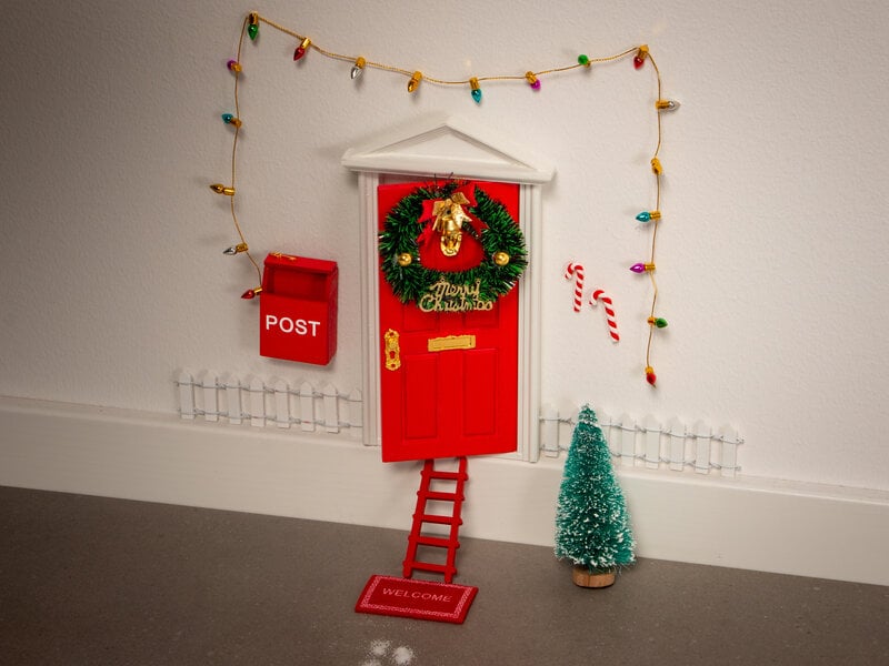 Giv nissen sin egen indgang! Med denne kære nissedør med tilbehør kan børnene opleve julens små mysterier og eventyr derhjemme.