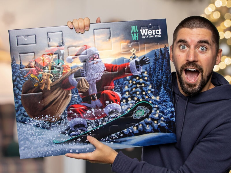 Ge hjemmefikseren den ultimative decembergave: Wera Værktøjskalender! 24 låger fyldt med værktøj og tilbehør, der hjælper med at opgradere værktøjskassen med stil.