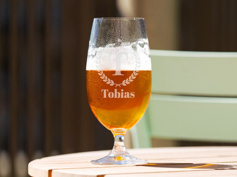 Personligt Spiegelau Ĝlglas med Gravering - Bogstav, Navn & Krans