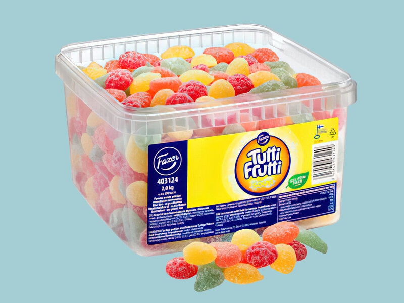 Tutti Frutti fra Fazer er manges yndlingsslik, og vi forstår godt hvorfor. Blødt slik med frugt- og bærsmag fremstillet med naturlige farver og fri for gelatine. Kan det blive bedre? Ja, det ville i så fald være syrligt sukrede Tutti Frutti. Nu i en billig kasse med hele 2 kg Tutti Frutti Sour!