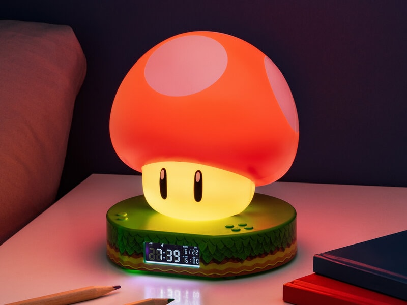 Slør grænserne mellem drøm og virkelighed med vækkeuret, der lader dig vågne lige så sødt som Princess Peaches fra det nostalgiske favoritspil Super Mario. Sov sødt i skæret fra den kombinerede natlampe og vækkeur i form af Toad!