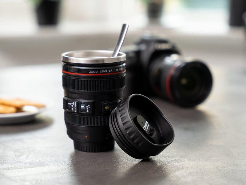 Et objektivkrus er et must for alle fotointeresserede! Her finder du et sjovt krus, der i uhyggelig grad ligner et rigtigt kameraobjektiv, og som er perfekt til at nippe kaffe af, når du er på fotoeventyr eller redigerer billeder foran computeren.