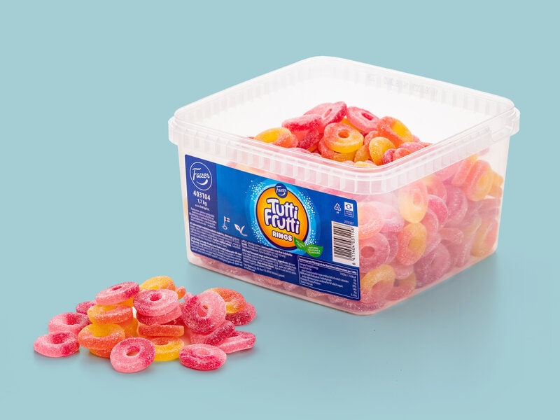 Tutti Frutti Rings Bland-selv slik i kasser 1,7 kg
