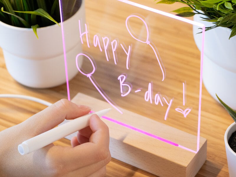 Tænk hvis du kunne skrive en personlig besked på en tavle og så sætte tavlen ned i et flot stativ og få budskabet belyst. Intet problem med en LED Skrivetavle er det muligt!