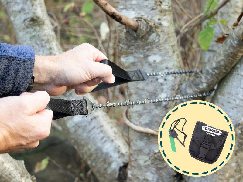Skal du på tur, er det vigtigt hurtigt at kunne sammensætte et læhegn eller lave bål, inden både tøj og humør bliver trist. Med en kædesav i lommeformat kan du nemt save både store og små grene til alle friluftslivsprojekter. Der medfølger et tændstål, så du kan blive klar med bålet på ingen tid.
