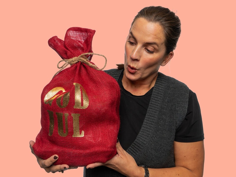 Ho ho ho! Denne røde julesæk er propfyldt med søde sager, der får både store og små til at få stjerner i øjnene. Perfekt at lægge under træet eller give til en, der elsker slik.