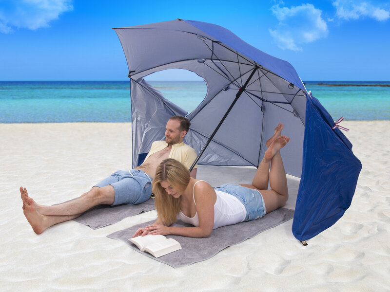 Nyd både skygge og læ under denne parasol med vindbeskyttelse! Parasollen fungerer som et skyggetelt - taget beskytter mod solens UV-stråler med UV-beskyttelse 50+, og sidestykkerne beskytter mod vinden. Vores UV-parasol er perfekt til dovne dage på stranden, i haven og på campingferien!