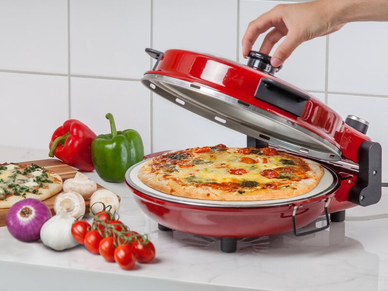 Lav din egen pizza eller bag en frossen hurtigt og nemt i vores KitchPro Pizzaovn! Ovnen har keramisk bagesten og dobbelt varmeelement - din pizza bliver perfekt tilberedt og får en herligt sprød bund på cirka 10 minutter!