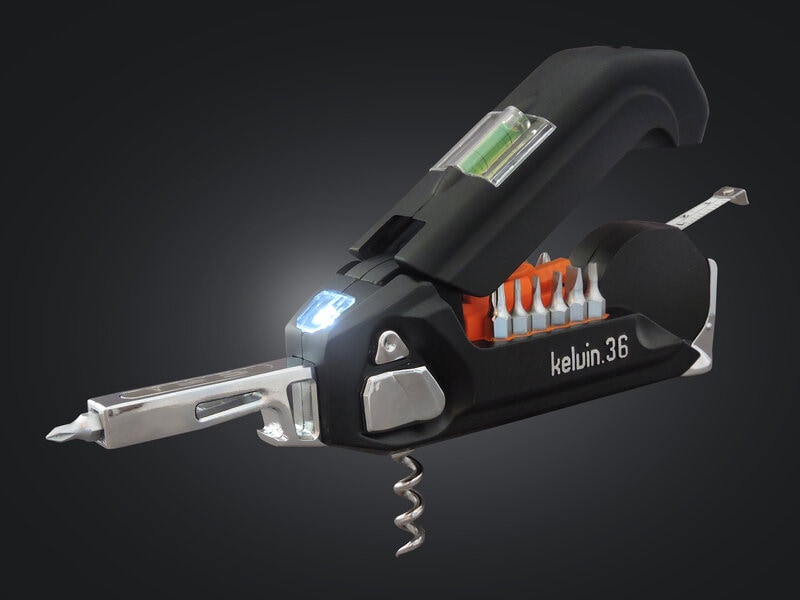 Skru møbler sammen, hæng billeder op, eller åbn en flaske vin med multiværktøjet Kelvin.36 kan du klare det meste! Det kompakte værktøj er hele 36 forskellige stykker værktøj i ét: Bl.a. målebånd, vaterpas, hammer og skruetrækker med 26 forskellige bits hvad skal du med en stor værktøjskasse?!