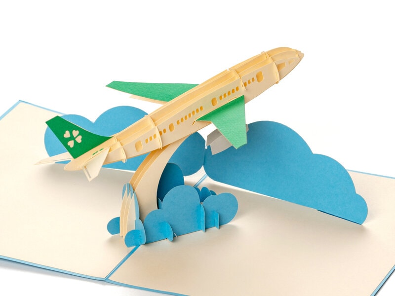 Ønske globetrotteren en rigtig god tur, eller byde eventyreren velkommen hjem efter en lang rejse? Dette smukke 3D-kort med en flyvemaskine som motiv vækker rejselysten og får os til at længes efter udforskning af nye steder. Leveres med kuvert.