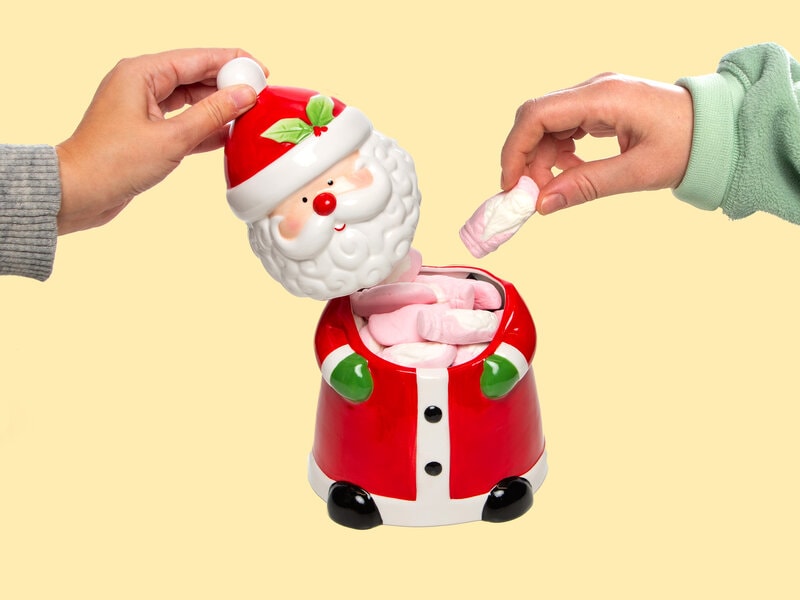 Med denne charmerende nissedåse kan du opbevare julens alle lækkerier med stil. Fyld den med juleslik, pebernødder eller noget andet lækkert og julet - nissen vogter indholdet med glæde.