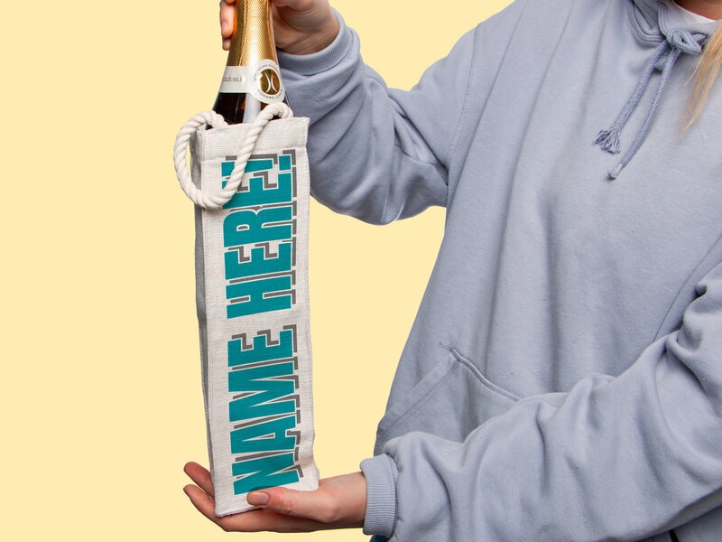 Giv en flaske vin med personlig stil væk! Vores unikke gavepose til vin gør hver gave ekstra speciel og personlig med din egen tekst.