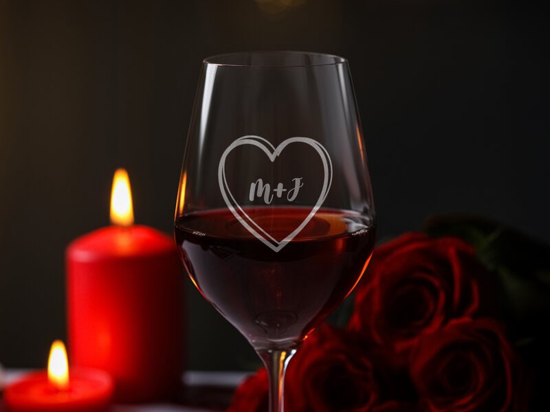 Skål for kærligheden! Overrask din elskede med et elegant rødvinsglas fra Spiegelau, graveret med et hjerte og valgfri tekst. Perfekt til romantiske aftener og minderige øjeblikke.