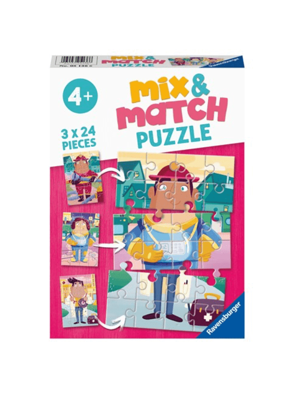 Mix & Match Job Swap 3x24 Brikker Dette puslespil Mix og Match er med mennesker og er et helt perfekt puslespil for børn. Der er 3Ã24 brikker. Alder 4 år+