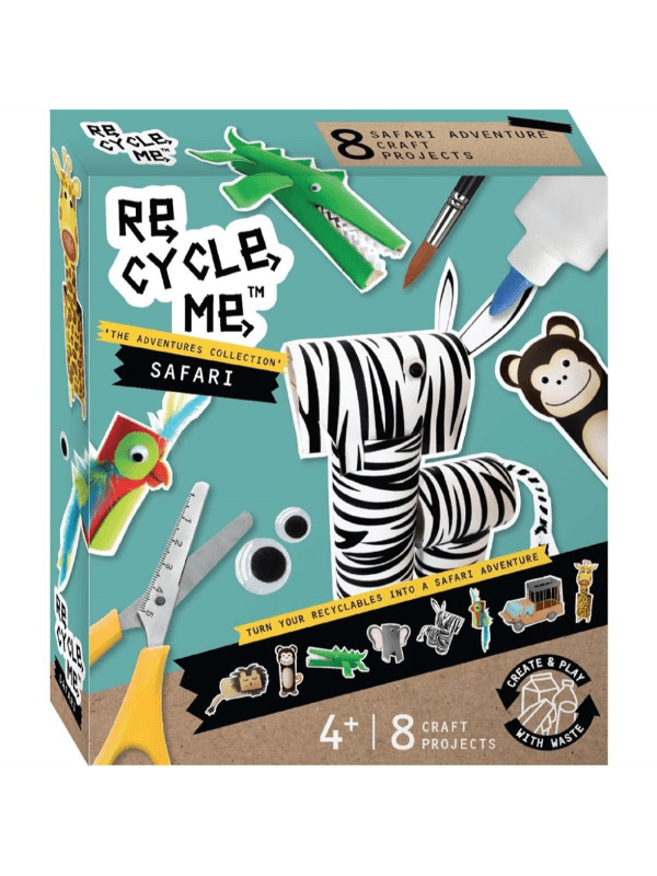 Re-Cycle-Me Safari Adventures Denne fantastiske Re-Cycle-Me Safari Adventures-boks med jungledyr-tema invitere til mange kreative timer. Æsken indeholder forskellige materialer til at skabe en løve, krokodille, abe, zebra, giraf, fugl, en elefant og en sa